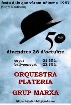 Així doncs, aquest divendres a El Progrés, gran festa de celebració dels 50 anys dels quintos i quintes del 1977. A partir de dos quarts de 10 de la nit, el sopar. A partir de dos quarts de 12, concert del grup Marxa i tot seguit, ball amb l’orquestra Plateria. Si voleu més informació o contactar amb els organitzadors podeu entrar al web www.quintos77.blogspot.com
