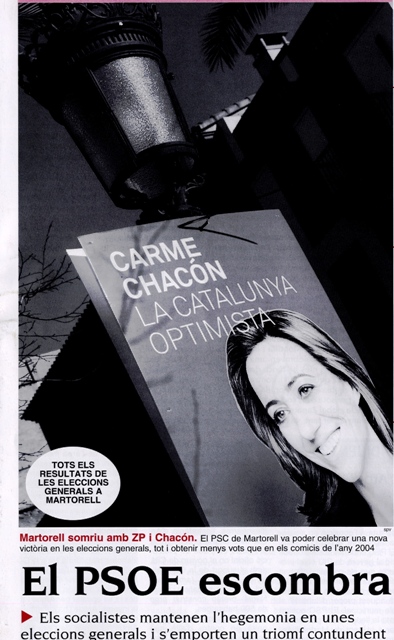 Naturalment, en aquestes eleccions hem recolzat totalment i hem fet una gran i esforçada campanya per tal que José Luis Rodríguez Zapatero esdevingui president del govern, que es el que molt probablement passarà, per alegria nostra i pel bé de Catalunya.