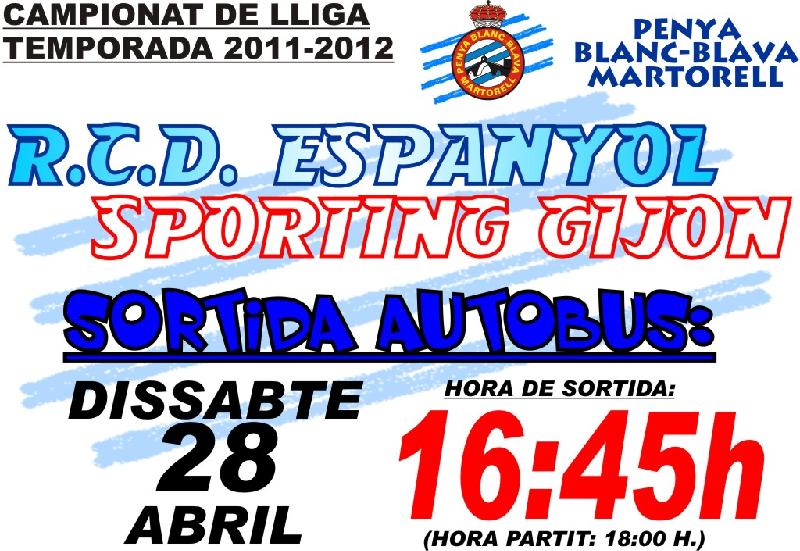 Pàgina principal >> Les Noticies >> Bus partit RCD Espanyol – Sporting Gijon | |||||||||||||||||||||||||||||||||||||||||||||||||||||||||